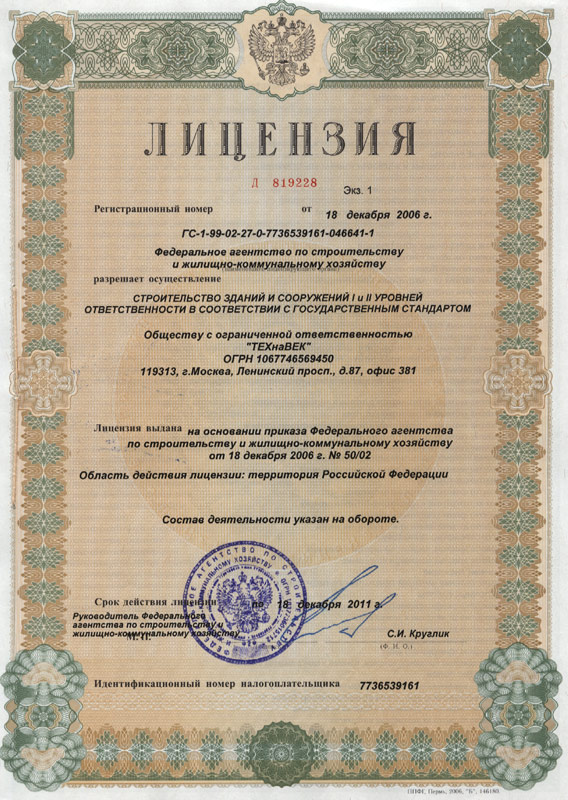 ЛИЦЕНЗИИВы можете увидеть лицензии, полученные компанией «ТЕХнаВЕК», нажимая на ссылки с названиями лицензий, приведённые ниже. | |