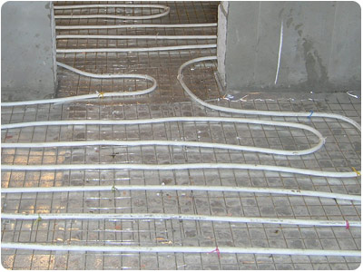 Вас интересует, что за причудливые узоры наши сотрудники выложили из гибких шлангов? Это тёплые полы, вернее их основа. Пол, положенный на них будет приятно-тёплым и по нему можно ходит босиком даже очень холодным зимними вечерами, не боясь простыть.